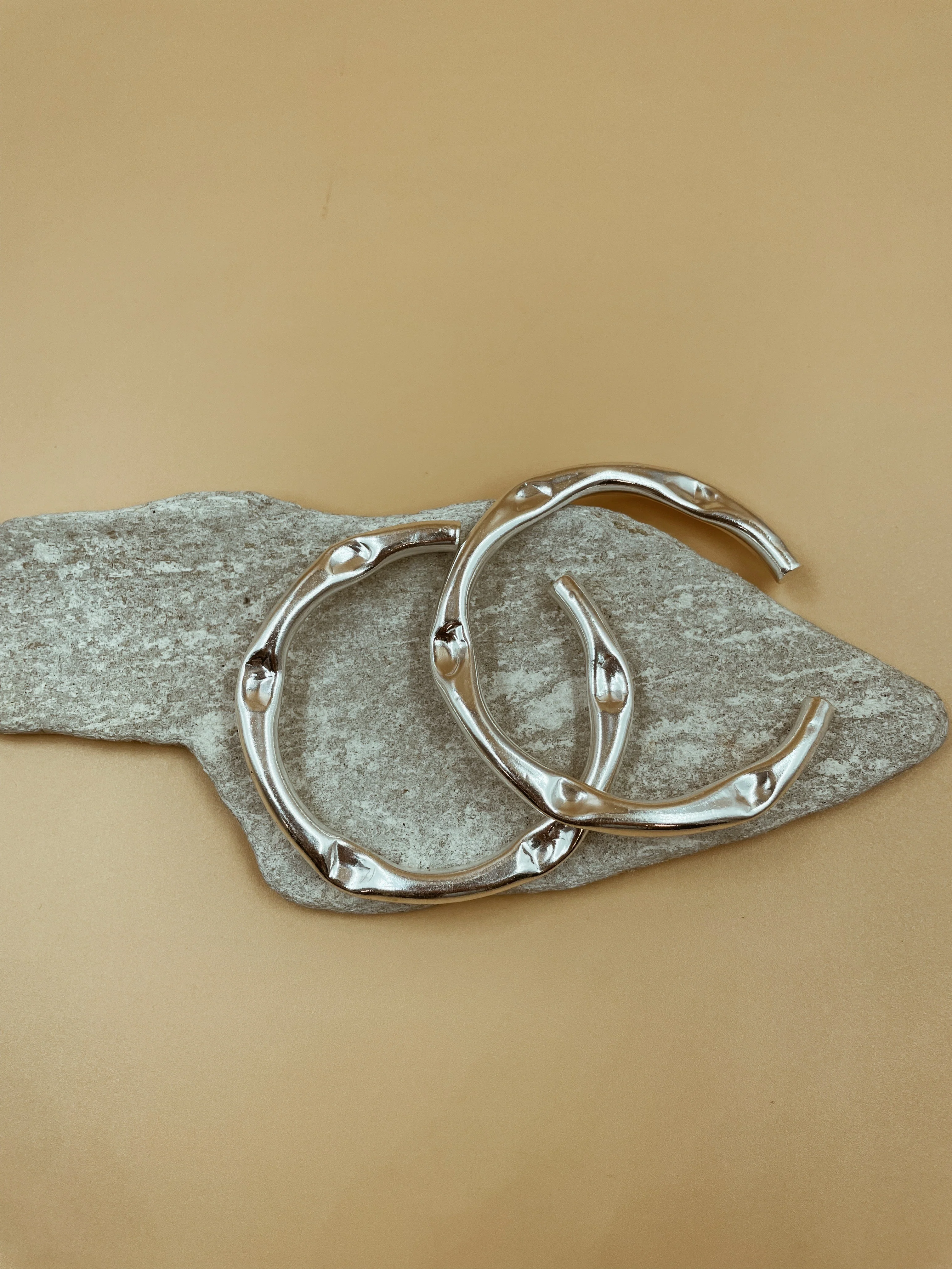 The Crater bangles come as a single piece or in a set of two and in two sizes, slender and chunky.