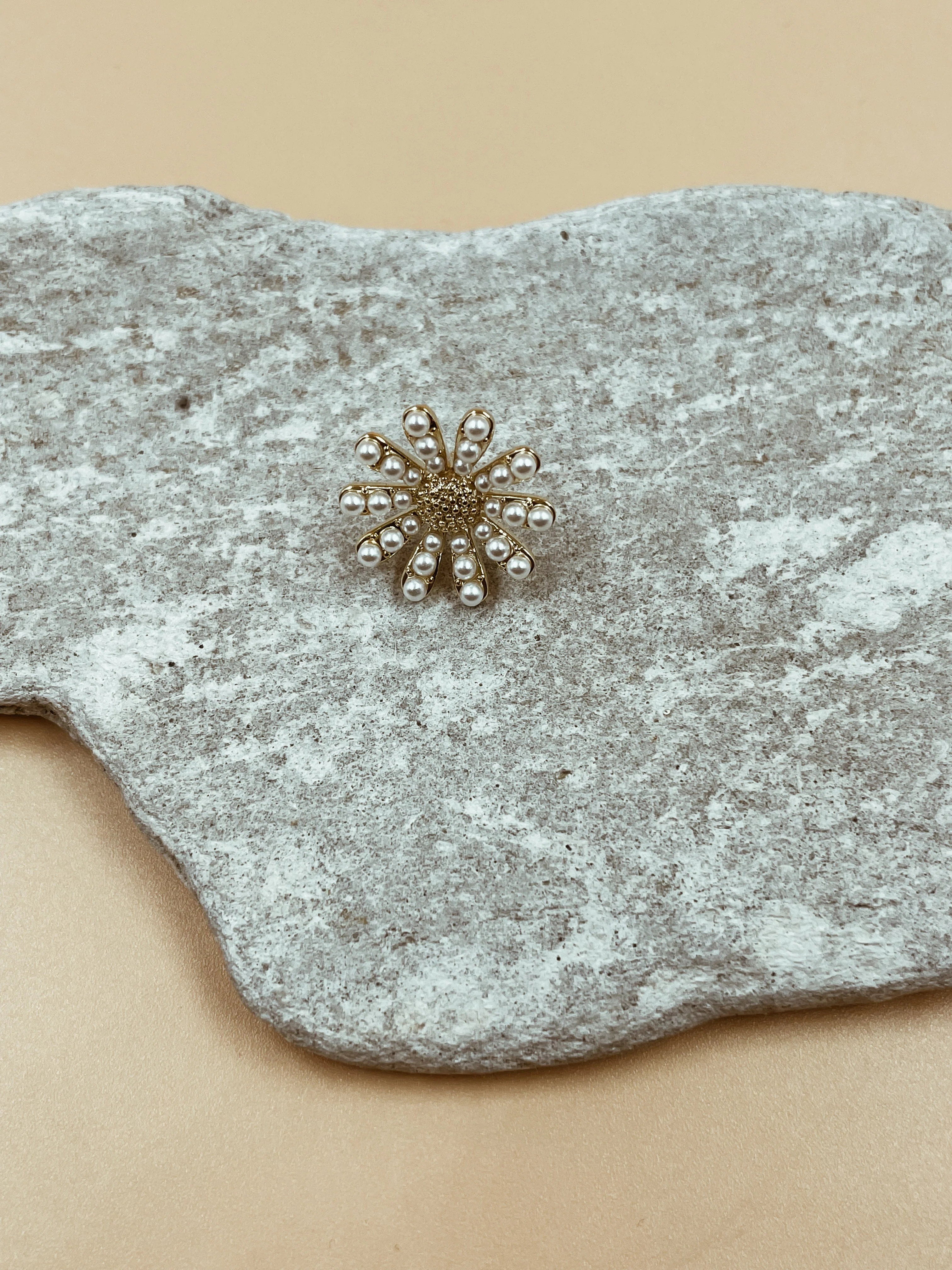 Seed pearl cabochons sits tightly on handcrafted petals of our grown-up Daisy. Place it close to your heart to reminisce the long summers and some of your favourite childhood memories.