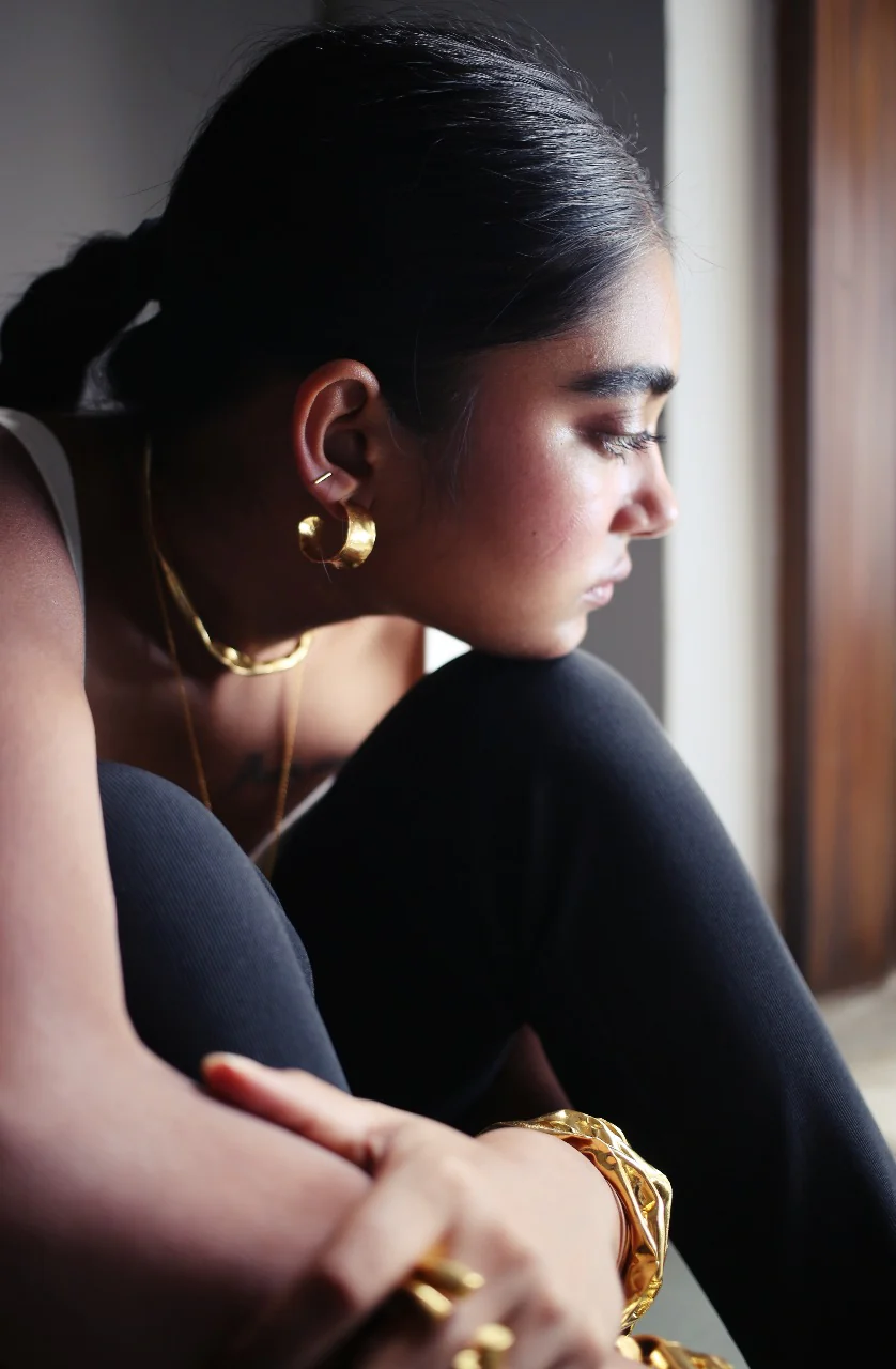 The Crater hoops remind us of balmy days spent in a Spanish fishing village and hazey salsa nights at the local watering hole that follows. The hoops look lovely with thin bracelets and a jangle of necklaces for maximum impact (pun intended).