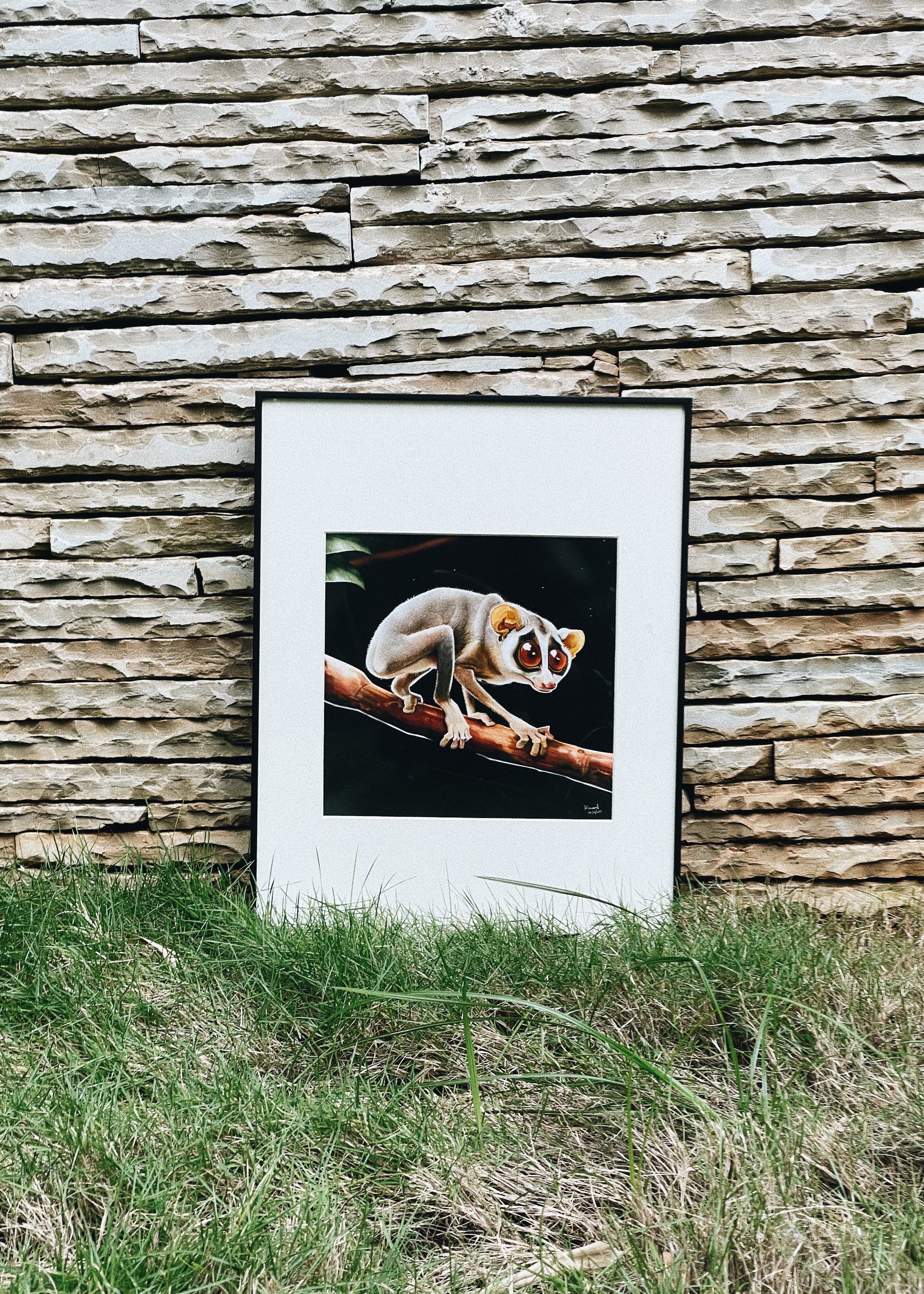 An endangered species, the Loris brings to mind steadfastness — and an urge to know more, and do more. We hope this art print and its story inspires you, as it has done us.