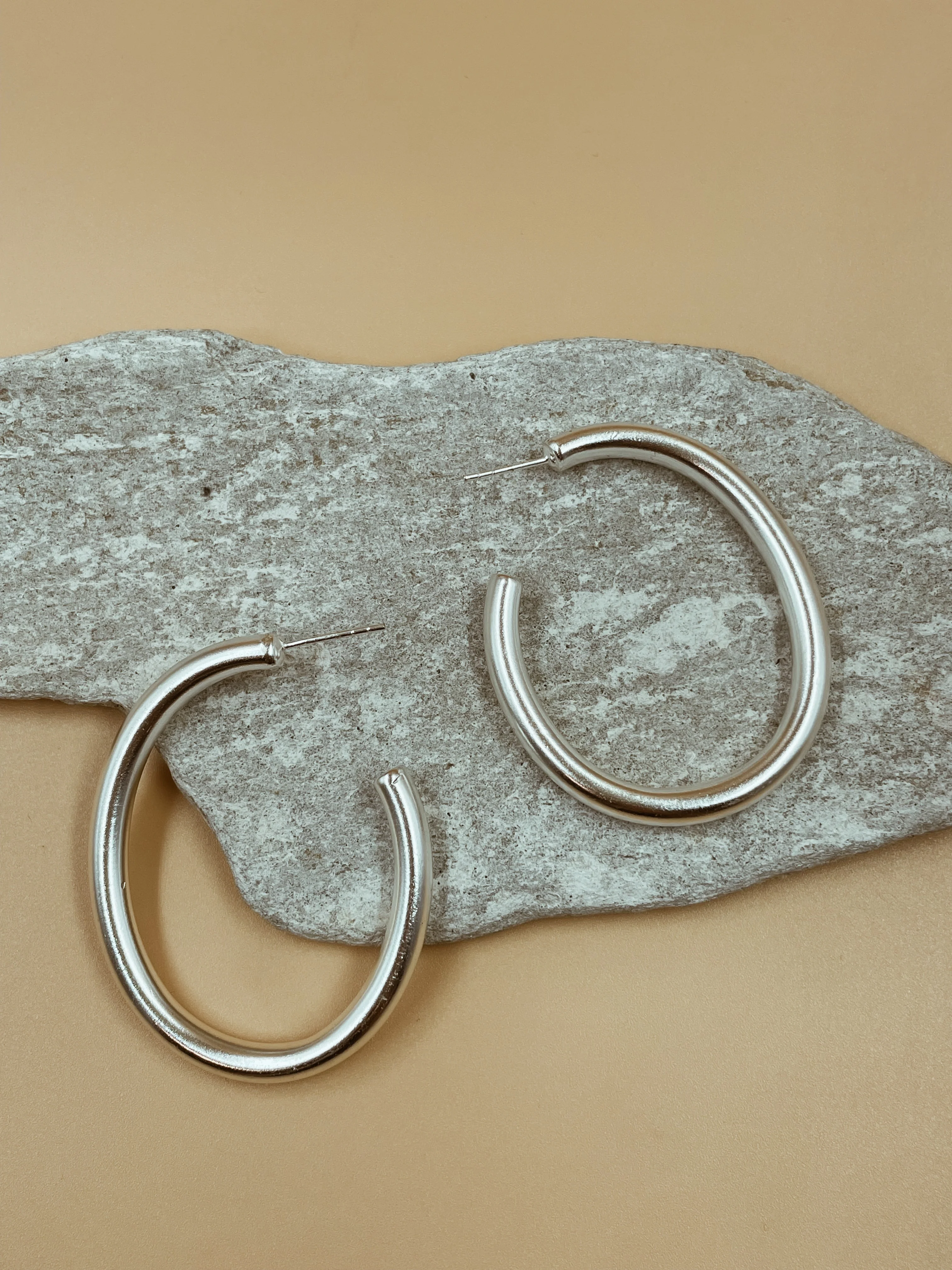 Medium Narrow Chimbai Hoops in Silver Tone