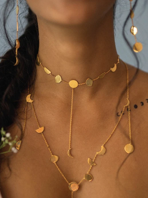 Wear the Phases choker layered with the Phases necklace for a Lune-y, luminous look
