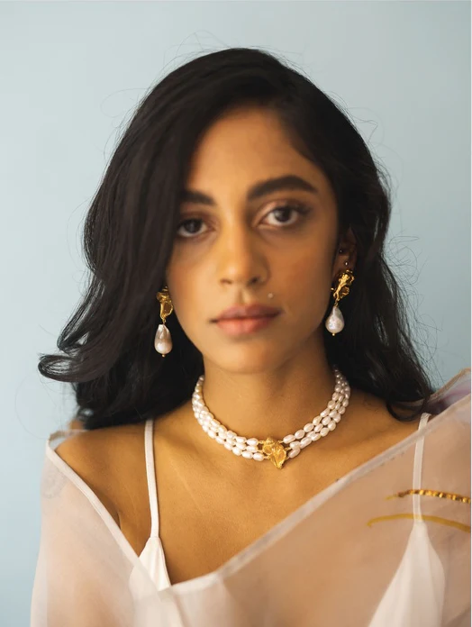 - Handcrafted in brass with 18kt gold plating | Rare freshwater baroque pearls