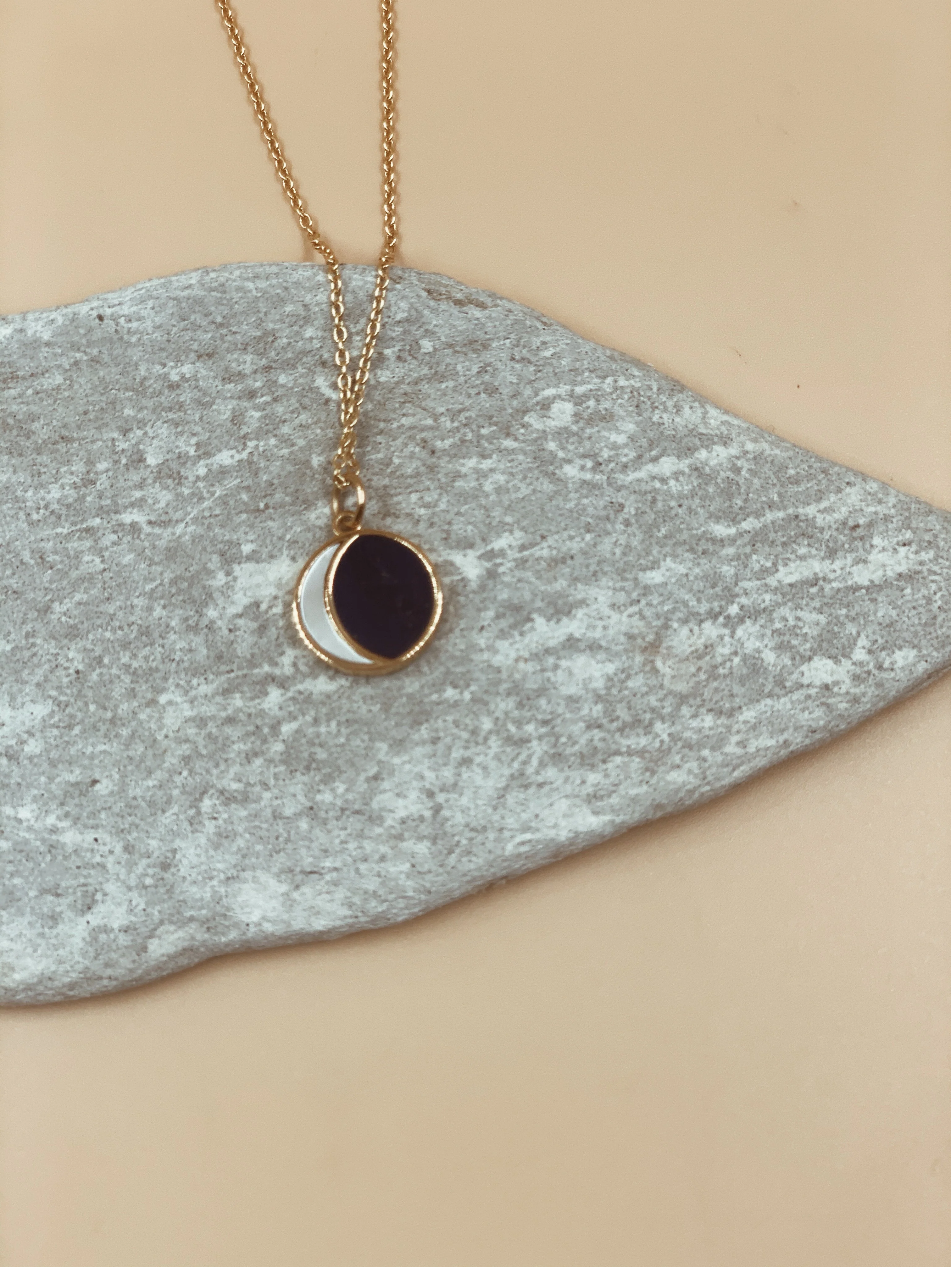 A sliver carved out of Mother of pearl and burning blue lapis — together, they create an ethereal vision, straight out of the night sky. Handcrafted in sterling silver and embraced in gold polish, this is a contemporary classic that'll take you from night to day. The necklace is also available in a big size.