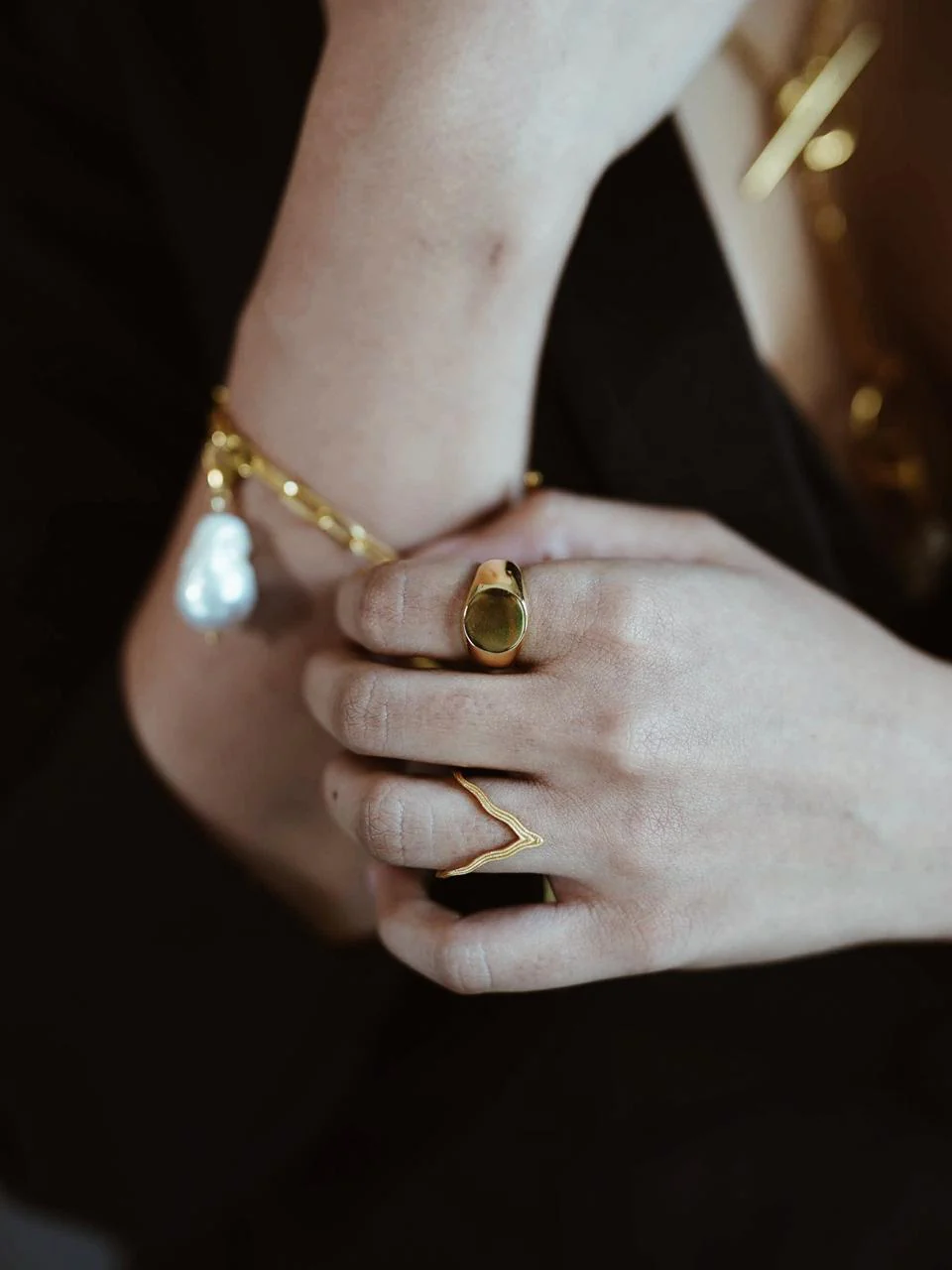 Wear your signet ring with jewellery that’s complementary but not over-the-top, say, thin gold hoops and our Crescent Moon medallion or Pointed Star necklaces.