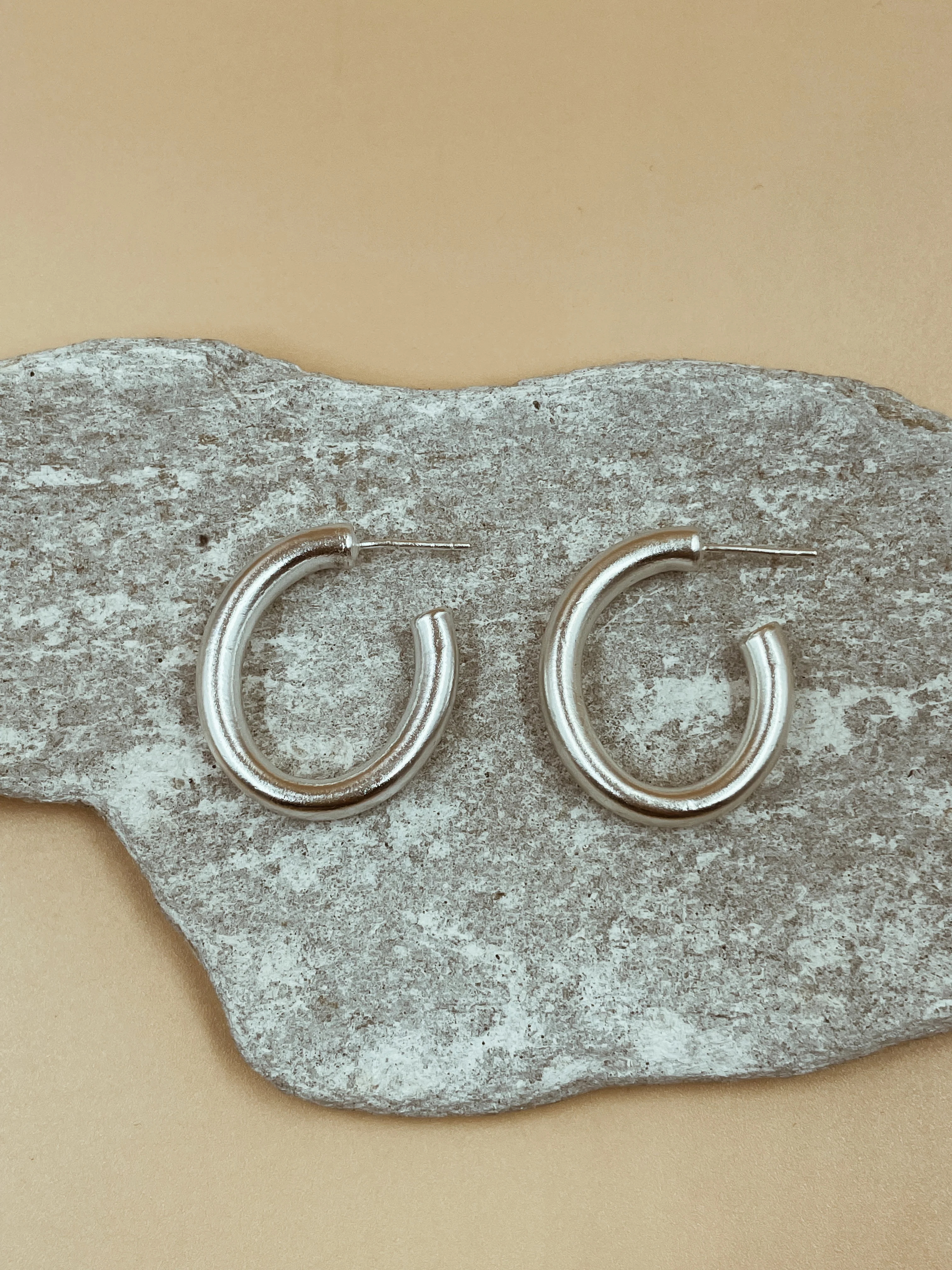 Small Narrow Chimbai Hoops in Silver Tone