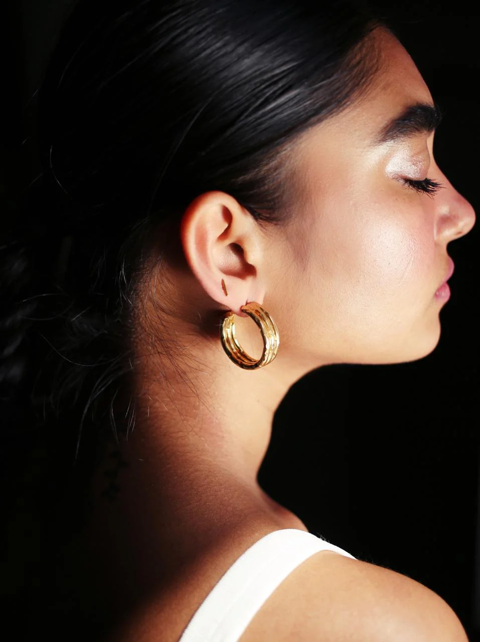 The Crater hoops remind us of balmy days spent in a Spanish fishing village and hazey salsa nights at the local watering hole that follows. The hoops look lovely with thin bracelets and a jangle of necklaces for maximum impact (pun intended).