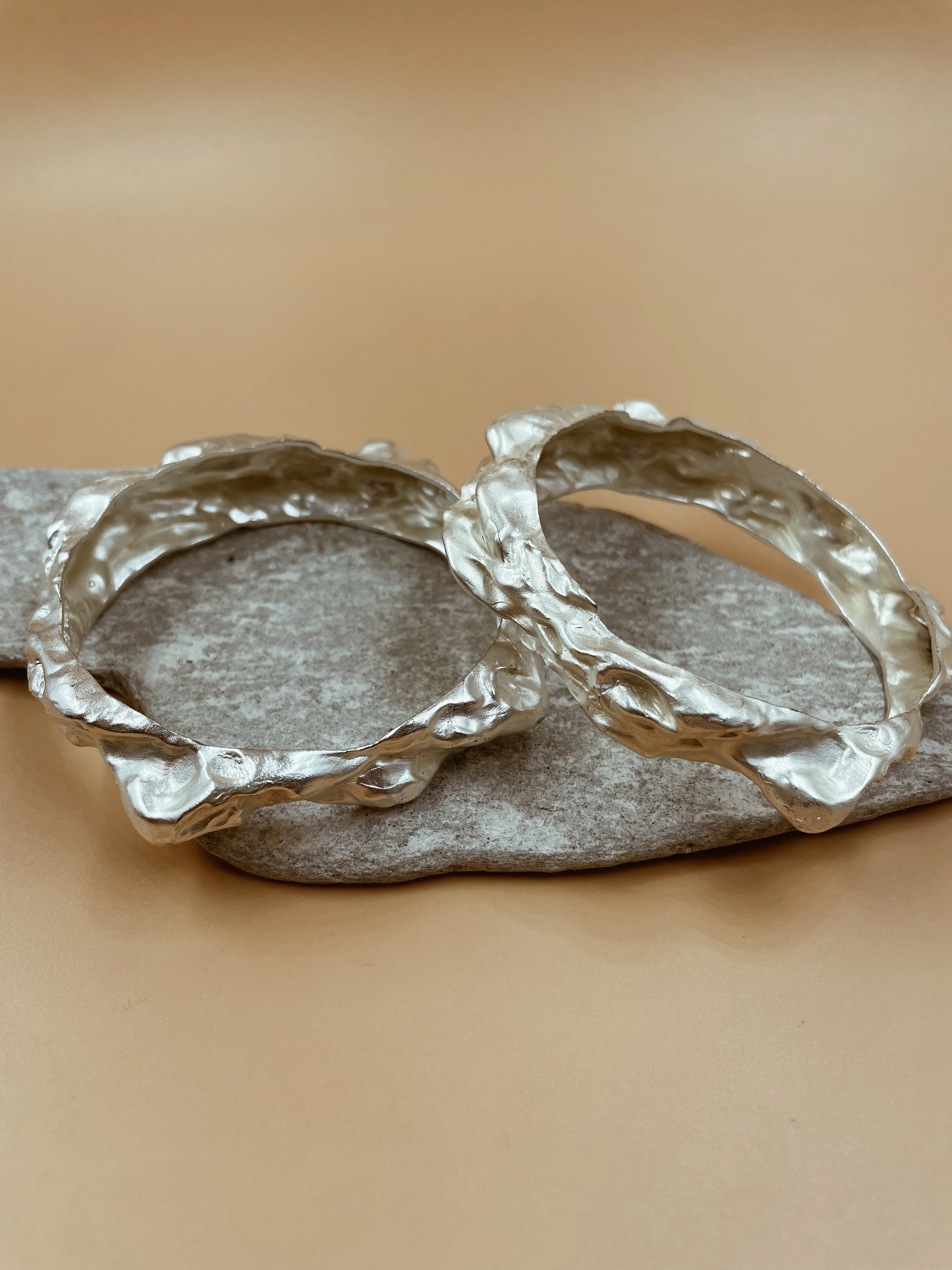 A conversation starter, our maximalist Vision Chunky Bangle captures attention right away. The simple symmetrical form is adorned with molten gold textures which bring a sense of raw beauty to mind (or is it the moon’s surface?).